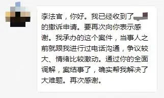 “王先生現(xiàn)在生活困難,現(xiàn)在大家達(dá)成了調(diào)解協(xié)議,被告這邊能不能當(dāng)庭履行,讓這一系列的糾紛,就在今晚畫上句號(hào)?”在李法官情理法的耐心疏導(dǎo)下,針織廠當(dāng)場履行了調(diào)解協(xié)議。收到調(diào)解款后,王某就所有與針織廠相關(guān)的案件出具了撤訴申請(qǐng)書,當(dāng)晚即郵寄給審理關(guān)聯(lián)案件的法院。 “法官你說得對(duì),早點(diǎn)解決對(duì)大家都是解脫?!贬樋棌S代表感慨道。王某也長舒一口氣:“這件事拖了三年,今晚總算能睡個(gè)安穩(wěn)覺了!” 夜幕中,18起糾紛就此畫上了句號(hào)。不久,李法官收到了關(guān)聯(lián)案件承辦法院法官發(fā)來的信息。