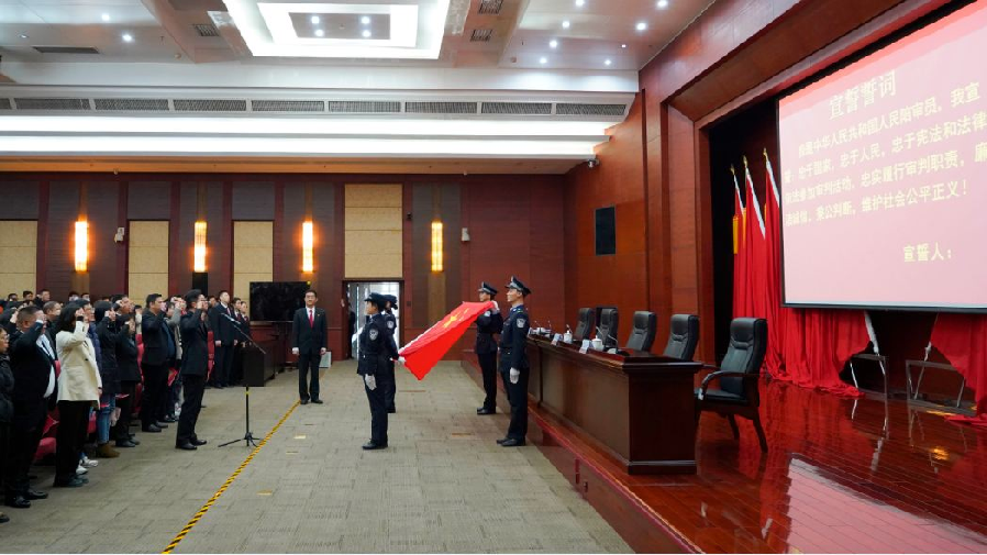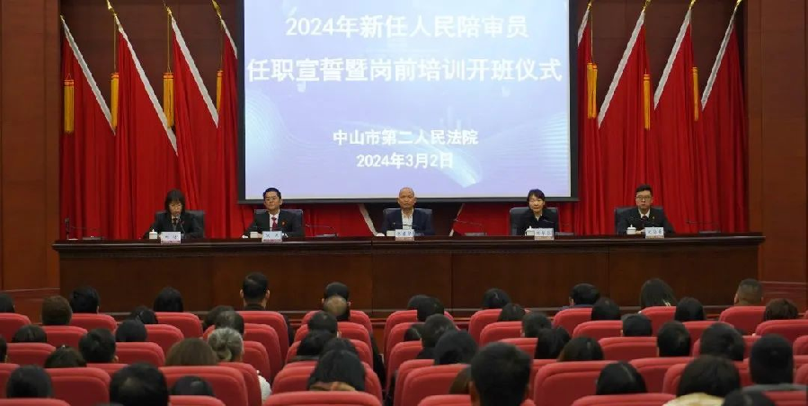 “我是中華人民共和國(guó)人民陪審員,我宣誓:忠于國(guó)家,忠于人民,忠于憲法和法律,依法參加審判活動(dòng),忠實(shí)履行陪審職責(zé),廉潔誠(chéng)信,秉公判斷,維護(hù)社會(huì)公平正義!” 3月2日,中山市第一人民法院、市第二人民法院開(kāi)展2024年新任人民陪審員就職宣誓儀式暨任職培訓(xùn)會(huì),新任人民陪審員高舉右拳,面向國(guó)旗莊嚴(yán)宣誓。