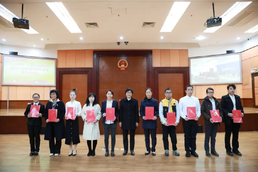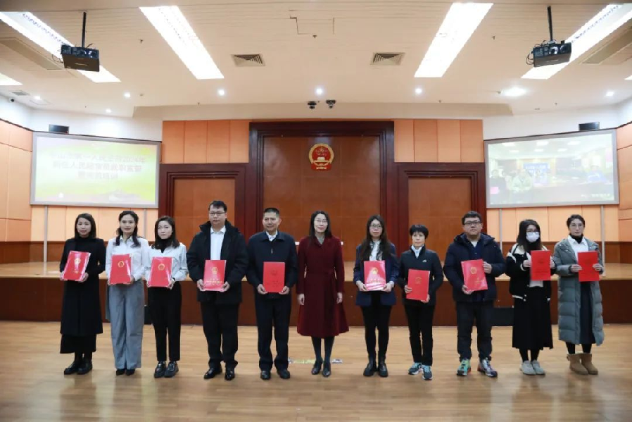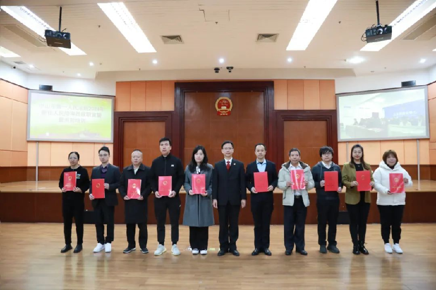 △為新任人民陪審員頒發(fā)任命書(shū) 據(jù)悉,本次人民陪審員選任按照《中華人民共和國(guó)人民陪審員法》有關(guān)規(guī)定,經(jīng)過(guò)發(fā)布選任公告、隨機(jī)抽選、審核把關(guān)、提請(qǐng)任命等流程,最終共有850人被任命為人民陪審員,涵蓋不同年齡、不同行業(yè)、不同專業(yè)的人員。 宣誓儀式結(jié)束后,法院為人民陪審員開(kāi)展了崗前培訓(xùn)“第一講”。