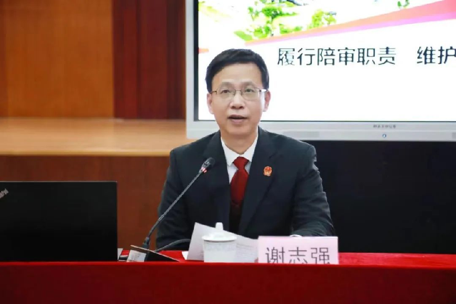 △崗前培訓(xùn)“第一講” 新任人民陪審員表示: 裴鈞科 中山市青聯(lián)委員、中山市留聯(lián)會(huì)理事、漫龍動(dòng)漫學(xué)院院長(zhǎng) 擔(dān)任人民陪審員是因?yàn)槲覠釔?ài)正義,喜歡參與社會(huì)公共事務(wù),希望通過(guò)自己的判斷力為社會(huì)做出貢獻(xiàn)。當(dāng)了人民陪審員后,我會(huì)認(rèn)真履行自己的職責(zé),仔細(xì)聽(tīng)取案件事實(shí)和證據(jù),公正、客觀地做出判斷,維護(hù)社會(huì)公正和法治權(quán)威。做到公正無(wú)私、嚴(yán)謹(jǐn)認(rèn)真、善于溝通,為社會(huì)公正和法治建設(shè)做出貢獻(xiàn)。 張文靜 華帝品牌海外市場(chǎng)推廣策劃 作為一個(gè)普通公民,為國(guó)家法治建設(shè)做貢獻(xiàn)是我們應(yīng)盡的義務(wù),在校的時(shí)候,我是班干部,讀的是法律專業(yè),現(xiàn)工作從事外貿(mào)行業(yè)十余年,維護(hù)正義、守法、懂法是我人生信條和工作準(zhǔn)則,希望用自己的行動(dòng)力去影響身邊的人,成為人民陪審員后,能履職盡責(zé),用依法公正的審判去對(duì)待民眾的訴求。 鄧沛文 廣東省中山市質(zhì)量技術(shù)監(jiān)督標(biāo)準(zhǔn)與編碼所條碼室副主任 成為人民陪審員是為了讓自己更好地履行公民職責(zé),從更加真實(shí)角度了解社會(huì),發(fā)揮自身能力,更好地融入社會(huì)或法院工作。希望自己能夠積極完成人民陪審員培訓(xùn),正式成為陪審員后,積極參與人民法院的陪審工作,保持客觀公正,對(duì)參與陪審的案件進(jìn)行保密。 市中級(jí)法院黨組成員、副院長(zhǎng)李桂蘭,市司法局黨組成員、副局長(zhǎng)陳玉碧,市兩級(jí)法院、市司法局有關(guān)負(fù)責(zé)同志參加活動(dòng)。