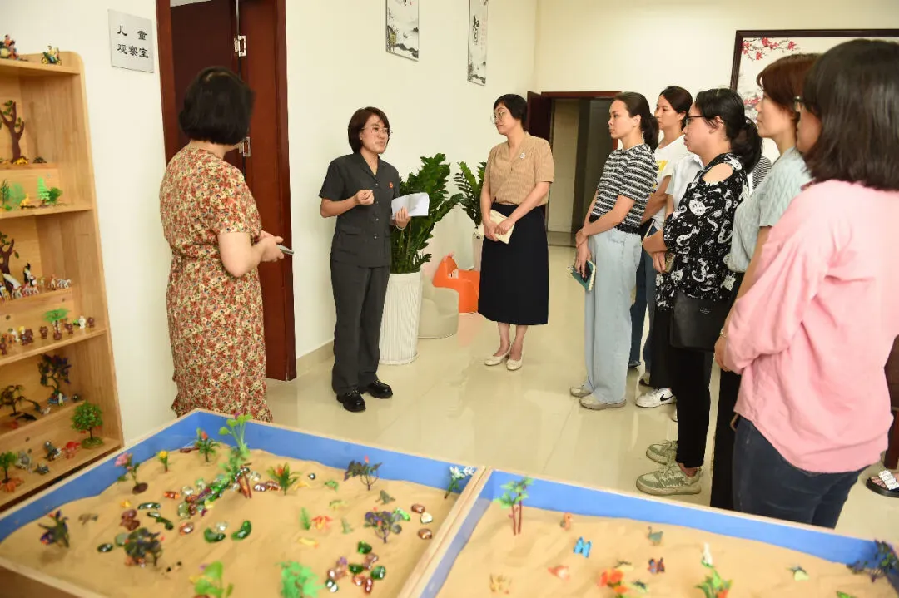 與會人員在二樓大廳參觀了家事審判特色功能區(qū),聆聽中山法院婦女兒童權益保護工作的創(chuàng)新舉措,并觀看了中山法院家事審判改革宣傳片。