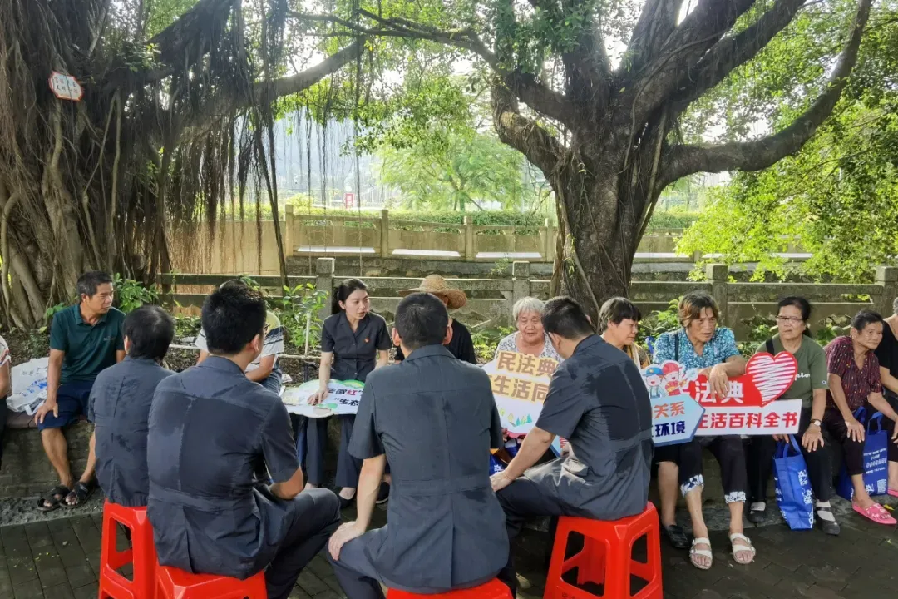 ▲有獎知識問答 本次活動深入鄉(xiāng)村,將法律知識和司法服務(wù)送到村民家門口,讓更多的村民了解法律、掌握法律,從而提高村民的法律意識,構(gòu)建更加和諧、文明、法治的鄉(xiāng)村社會。 接下來,中山法院將深入創(chuàng)建“楓橋式人民法庭”,秉承“抓前端、治未病”的司法理念,主動融入“1+6+N”基層社會治理工作體系,深入開展普法進基層活動,高效實質(zhì)化解糾紛,繪就基層治理“新楓景”。