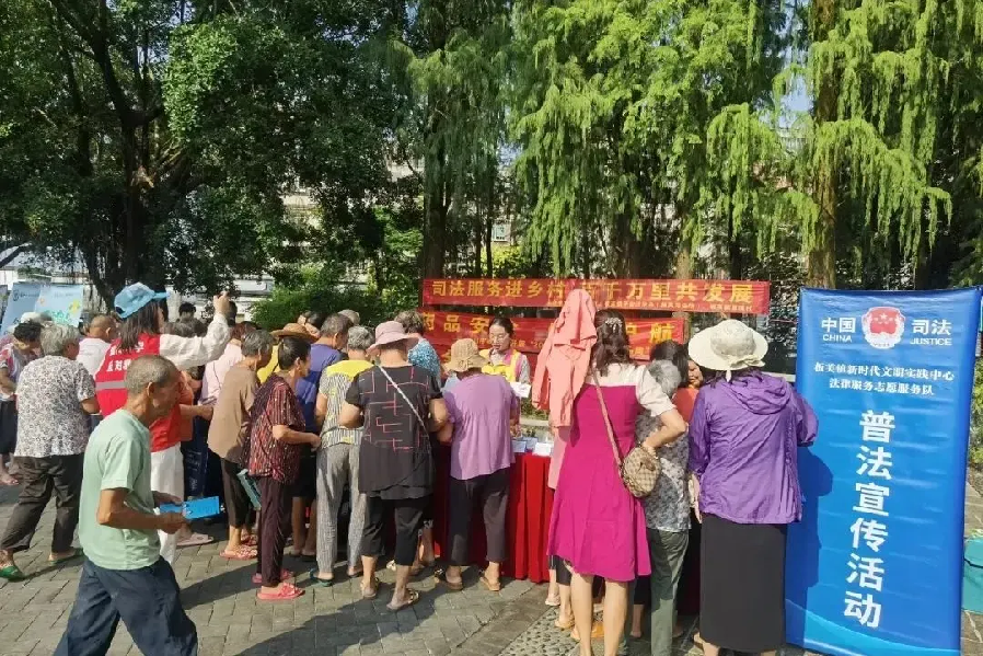 ▲法官貼近群眾現(xiàn)場說法 “法潤?quán)l(xiāng)風(fēng)”鄉(xiāng)村振興法律服務(wù)工作站旨在預(yù)防化解鄉(xiāng)村社會矛盾、維護社會和諧穩(wěn)定,整合人民法庭、司法行政部門、村(社區(qū))兩委、網(wǎng)格員及調(diào)解員等各方力量,將“法治”理念與社會綜合治理工作相結(jié)合,深入踐行新時代“楓橋經(jīng)驗”,積極推動構(gòu)建“協(xié)調(diào)聯(lián)動、普法先行、調(diào)紛解憂”工作機制,推進“和治村居”落地生根。 二、司法服務(wù)進鄉(xiāng)村