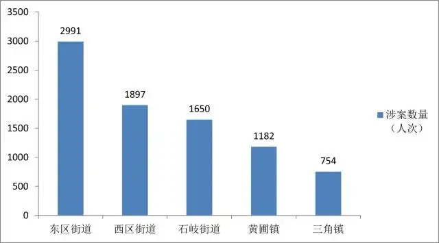 ▲一審案件數(shù)量及涉案金額。 中山市域間民間借貸活躍。從案件的地域分布來看,糾紛案件主要集中于鎮(zhèn)街,其中涉案數(shù)量最多的前五位分別為東區(qū)街道2991人次、西區(qū)街道1897人次、石岐街道1650人次,黃圃鎮(zhèn)1182人次,三角鎮(zhèn)754人次。涉港澳案件數(shù)量不少。2021年至2023年,民間借貸糾紛案件涉港澳主體402人次,反映中山市作為僑鄉(xiāng),與港澳民間經(jīng)濟(jì)交往頻繁密切。