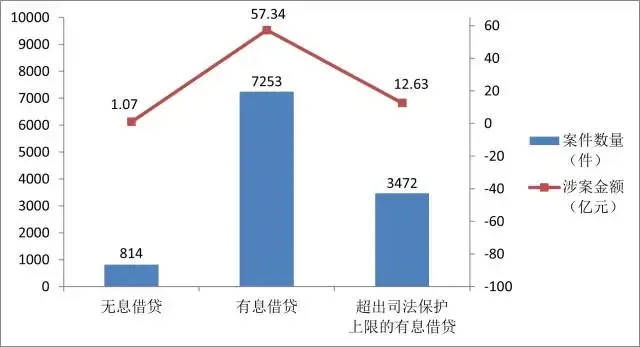 ▲借貸主體鎮(zhèn)街前五分布。 傳統(tǒng)的民間借貸,一般是基于借貸雙方特殊身份關(guān)系而為幫助他人提供無息借款。如今,民間借貸案件中大多都約定了利息支付,說明民間借貸的性質(zhì)已經(jīng)發(fā)生了轉(zhuǎn)變,成為一種投資方式,出借方往往以獲取投資性利息為目的。 據(jù)中山中院統(tǒng)計(jì),2021年至2023年,中山市無息借貸案件僅為814件,涉案金額為1.07億元,有息借貸案件為7253件,涉案金額為57.34億元,其中超出司法保護(hù)上限的有息借貸案件為3472件,涉案金額為12.63億元。