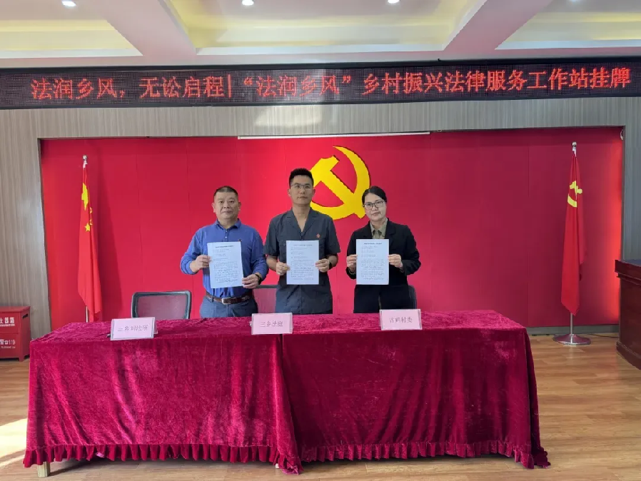 助力振興再邁步 近年來(lái),三鄉(xiāng)法庭持續(xù)落實(shí)“法官下村居”工作,實(shí)行“一村一法官”工作模式,通過(guò)“法官下村居”共提前化解糾紛100余件。為切實(shí)強(qiáng)化源頭治理,2024年以來(lái),三鄉(xiāng)法庭在“法官下村居”基礎(chǔ)上再度升級(jí),打造“法潤(rùn)?quán)l(xiāng)風(fēng)”鄉(xiāng)村振興法律服務(wù)工作站。工作站通過(guò)整合人民法庭、司法行政部門、村居兩委、網(wǎng)格員及調(diào)解員等各方力量,構(gòu)建“協(xié)調(diào)聯(lián)動(dòng)、普法先行、調(diào)紛解憂”工作機(jī)制,依托普法、調(diào)解、列席村民議事、社會(huì)治理風(fēng)險(xiǎn)提示等手段,為鄉(xiāng)村振興繪就法治底色,助力打造“無(wú)訟”村居。