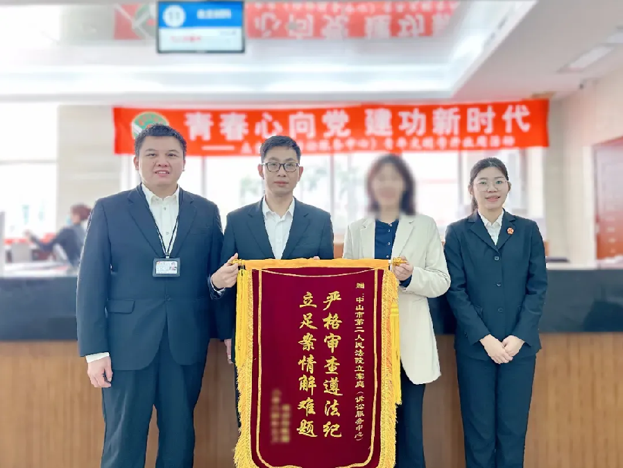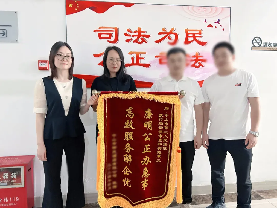 錦旗×3! 近日,市第二法院連續(xù)收到群眾送來的三面錦旗,一起來看看錦旗背后的故事。 涉及21萬元存款,僅2天迅速化解糾紛 “如果沒有及時完成解封,我們公司運營就很困難了,感謝法院的快速高效!”中山某酒店公司(化名)負責人將一面寫有“廉明公正辦急事,高效服務解企憂”的錦旗送到市第二法院訴訟保全團隊手上,為他們的高效、快速辦案表示感謝。