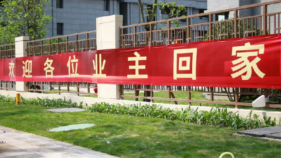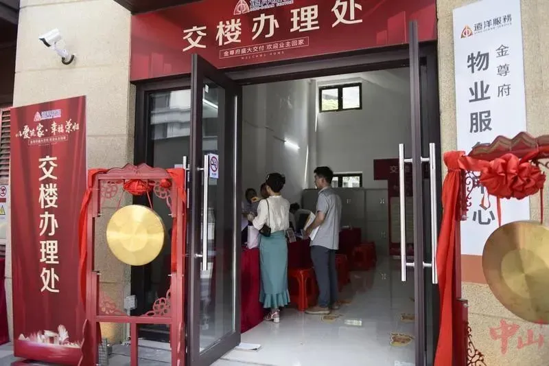 “歡迎回家!”5月15日上午,在位于中山市橫欄鎮(zhèn)的泰禾金尊府小區(qū),紅色鮮艷的展板引人注目。