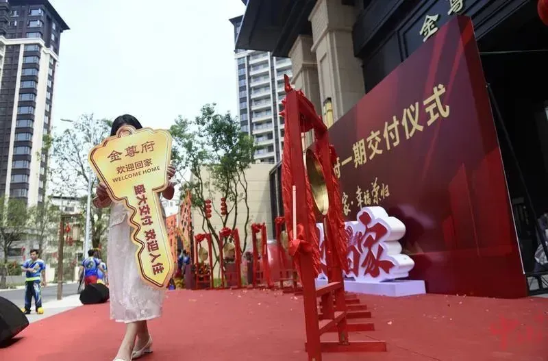 ▲5月15日,橫欄鎮(zhèn)金尊府一期項目交付業(yè)主。記者