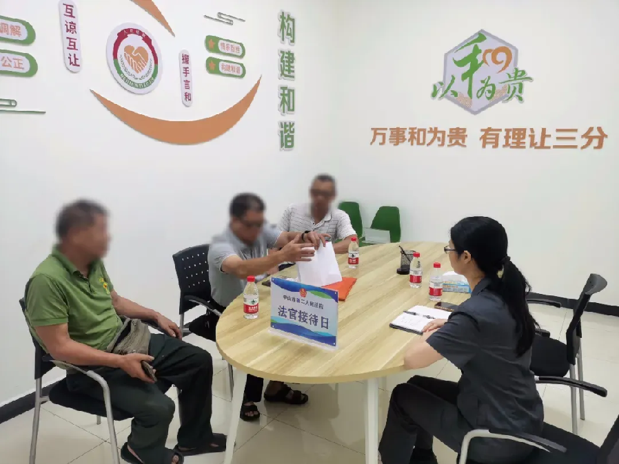 ▲法官在接待群眾 午后,值班室又迎來了幾位想民事立案卻感到無從下手的村民?!胺ü?,我們也不懂怎么樣打官司,也不知道怎么樣交材料?!睆垜c爭逐一解答疑問,耐心指導(dǎo)如何收集證據(jù)、準(zhǔn)備材料?!胺ü?,你講得很詳細(xì),我們知道了!”村民們向法官豎起了大拇指。據(jù)悉,從今年6月開始,中山市第二人民法院古鎮(zhèn)人民法庭結(jié)合“人民法官下村居”活動,推行“法官值班”工作機(jī)制,設(shè)立法官值班日,以指派法官、輪流值班方式,于每月10日和20日上午9:00-12:00分別在古鎮(zhèn)、橫欄綜治辦為當(dāng)?shù)厝罕娞峁┓勺稍兒驮V訟服務(wù)。 隨著日子一天天過去,法官值班室逐漸贏得了當(dāng)?shù)匕傩盏目诒@里,不僅解決了他們的法律難題,更傳遞了司法的溫暖。 “通過法官值班室,我們努力當(dāng)好理論政策‘宣講員’、法律咨詢‘講解員’、風(fēng)險(xiǎn)排查‘護(hù)航員’、紓困解憂‘調(diào)解員’,為企業(yè)和群眾提供精準(zhǔn)司法服務(wù)。”古鎮(zhèn)人民法庭庭長陳登烽介紹,截至目前,法官值班室已為30余名群眾提供法律服務(wù)。“我們通過綜治中心設(shè)置的矛盾糾紛‘一站式’化解平臺,將司法確認(rèn)服務(wù)前移,針對當(dāng)?shù)爻R姷恼?、相鄰?quán)、婚姻家庭等糾紛,通過指導(dǎo)調(diào)解并及時(shí)開展司法確認(rèn),既節(jié)省群眾時(shí)間減輕訟累,也有效提升糾紛調(diào)解成功率,從源頭上減少和預(yù)防矛盾糾紛的發(fā)生。”陳登烽表示。接下來,古鎮(zhèn)人民法庭將堅(jiān)持和發(fā)展新時(shí)代“楓橋經(jīng)驗(yàn)”,探索訴源治理的有效路徑,落實(shí)“庭所共建”聯(lián)動調(diào)解機(jī)制縱深發(fā)展,讓人民群眾在“家門口”感受到便捷高效的司法服務(wù)。