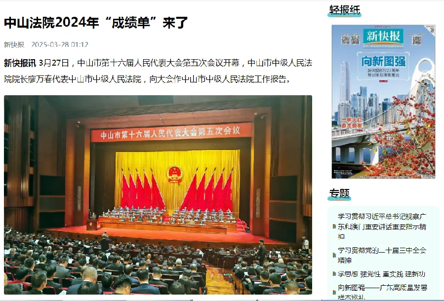 3月28日,中山市第十六屆人民代表大會第五次會議高票通過中山市中級人民法院工作報告,媒體聚焦法院工作報告都提到了哪些工作?↓↓↓