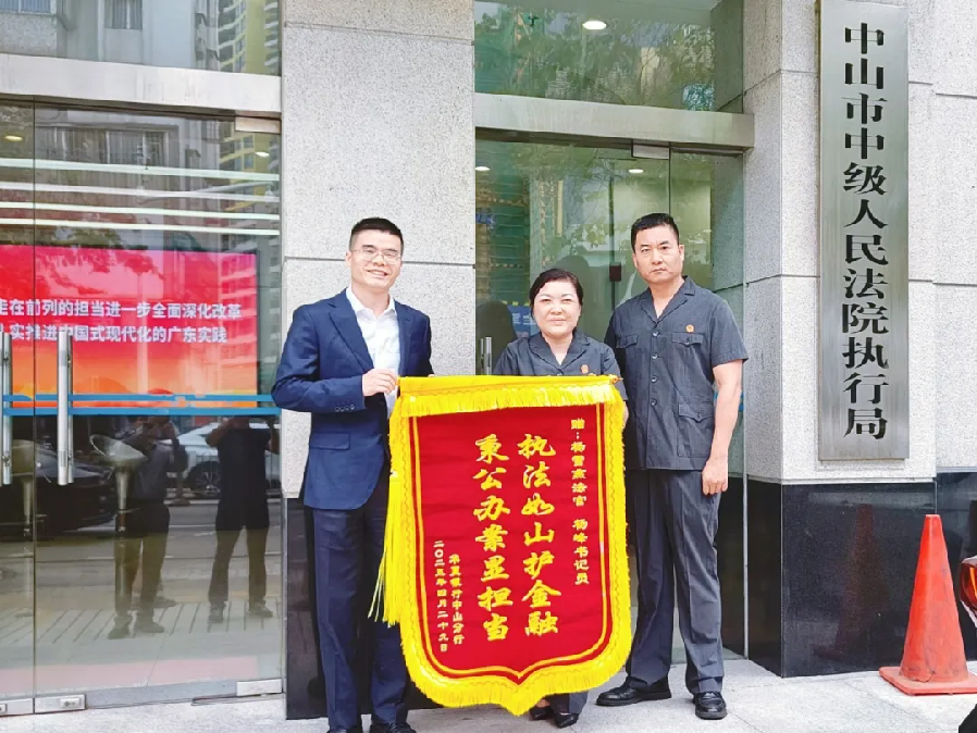 秉公辦案顯擔當"的錦旗。“這個案件由于企業(yè)實控人病故、當事人在香港居住、繼承人一度不配合等復(fù)雜因素,讓債權(quán)實現(xiàn)存在多重障礙。在此情況下,中山法院的專業(yè)和效率讓我們安心、放心,也讓我們真實感受到了中山的一流法治化營商環(huán)境?!比A夏銀行的代表表示。