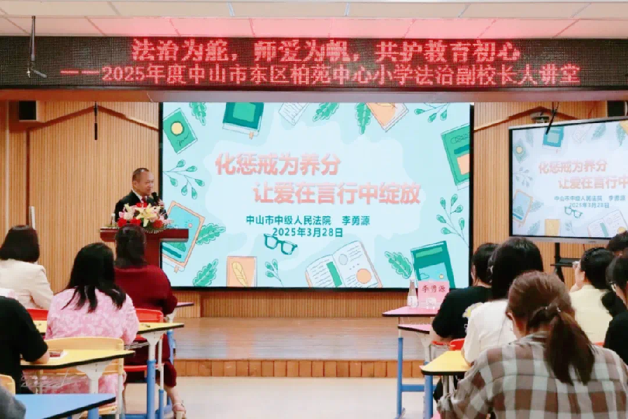 9月1日,新學(xué)期的大門已然開啟,告別夏日的慵懶,珍藏暑假的美好,背上裝滿夢想的書包,同學(xué)們重返生機(jī)盎然的校園。新學(xué)期,新開始! 開學(xué)季,還有一位“老朋友”如期而至,他就是——中山法院的法治副校長。 近年來,中山法院創(chuàng)新實(shí)施法治副校長“香山星火計(jì)劃”,構(gòu)建“五個(gè)一”工作機(jī)制,以“專業(yè)師資+系統(tǒng)規(guī)劃+量身定制+現(xiàn)場教學(xué)+家校社聯(lián)動(dòng)”五大保護(hù)體系融通發(fā)力,探索出一系列具有中山特色的創(chuàng)新模式,培育了一系列“國優(yōu)”“省優(yōu)”普法品牌。 2024年以來,中山法院成功爭創(chuàng)國家、省、市級(jí)表彰35項(xiàng),涌現(xiàn)出全國“八五”普法表現(xiàn)突出單位等榜樣典型,為護(hù)航青少年健康成長提供了堅(jiān)實(shí)司法服務(wù)和保障。 一、一個(gè)高標(biāo)準(zhǔn)組建的專業(yè)隊(duì)伍 將加強(qiáng)法治副校長工作作為“一把手”工程,兩級(jí)人民法院院領(lǐng)導(dǎo)帶頭示范擔(dān)任法治副校長。2024年8月,中山中院與市委政法委、市普法辦、市教體局等多部門舉辦聘任儀式,選派62名資深法官擔(dān)任學(xué)校法治副校長,創(chuàng)歷年人數(shù)最多,實(shí)現(xiàn)全市直屬中小學(xué)校全覆蓋。舉辦專題培訓(xùn),結(jié)合真實(shí)案例開發(fā)課程,涵蓋“預(yù)防犯罪”“網(wǎng)絡(luò)保護(hù)”等多個(gè)領(lǐng)域,為法治副校長精準(zhǔn)化授課提供更優(yōu)支撐。2025年7月,中山法院法治副校長在全省法治副校長微課比賽中獲評(píng)優(yōu)秀。
