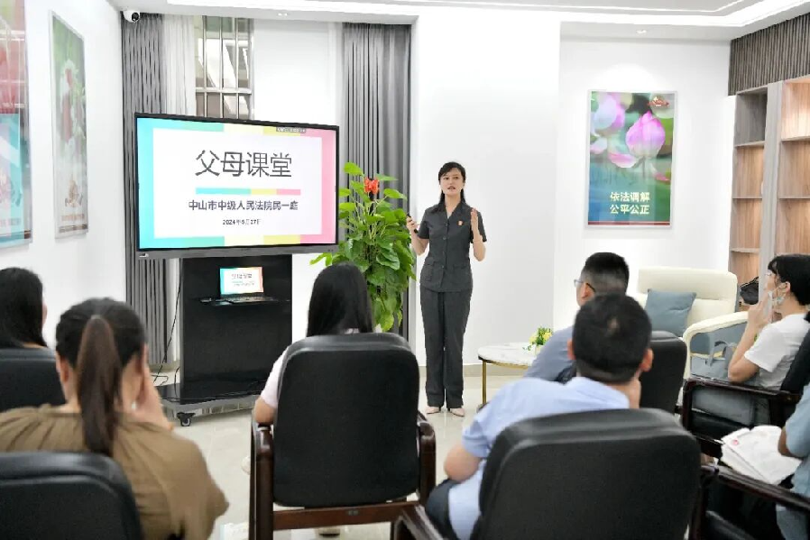 “鐘小法”“法小槌”等文創(chuàng)IP,制作《愛的監(jiān)護(hù)人》等未成年人保護(hù)主題影視作品在校園展播,傾力呈現(xiàn)一批青少年喜聞樂見、溫暖人心的法治文化精品。 五、一組立足長遠(yuǎn)的教育規(guī)劃 完善家校社協(xié)同教育機(jī)制,共同打造平安校園、和諧校園。全國首創(chuàng)“父母課堂”品牌,聚焦涉未成年子女的婚姻家庭糾紛,融合“普法教育+實(shí)質(zhì)解紛+成長指導(dǎo)”,從“心理+法律”兩方面對親子關(guān)系進(jìn)行指引,先后到南區(qū)竹秀園小學(xué)、中山市陽光學(xué)校等開展“父母課堂”6場次,惠及群眾600余人。